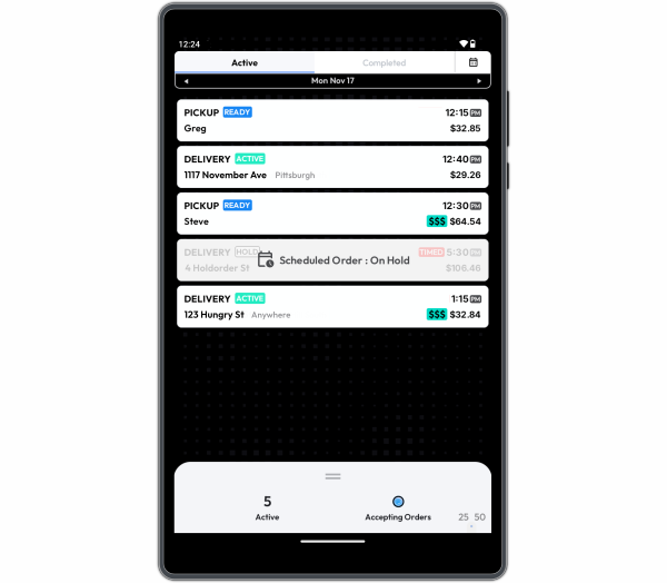 Receive Online Orders on the provided Tablet